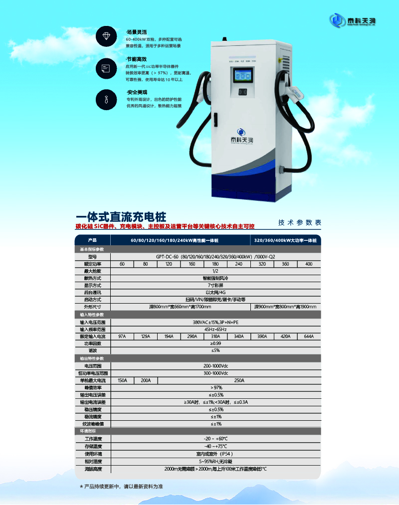 SiC功率器件和电芯产业日趋成熟大功率高压充电、高倍率电池成为主流趋势。使用低耗能,维护简单方便。
